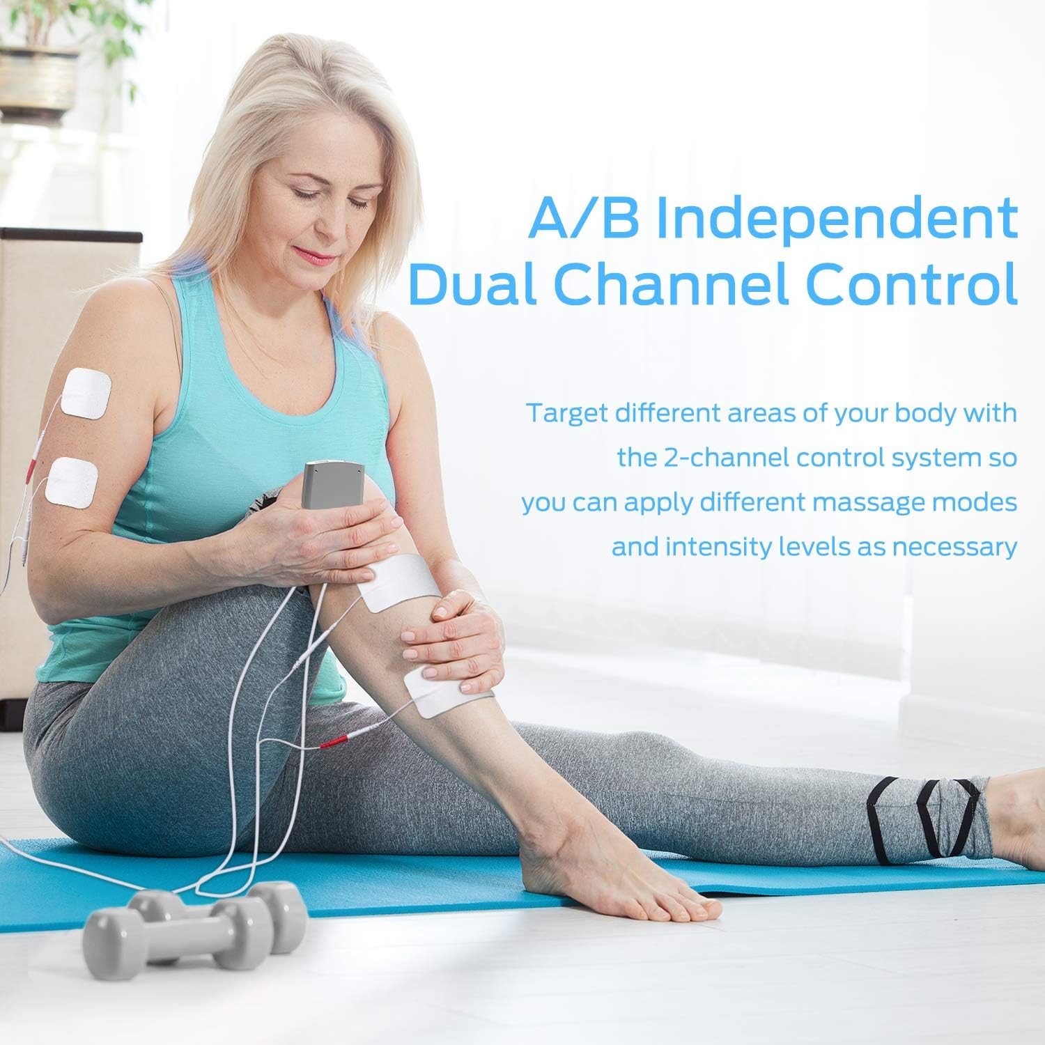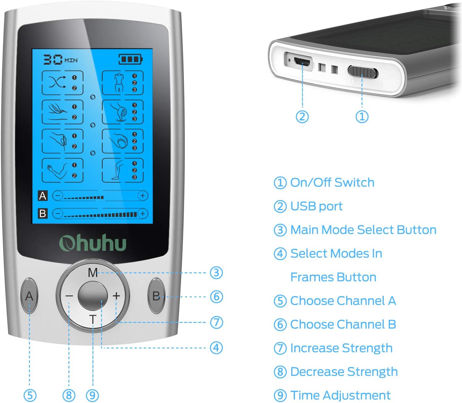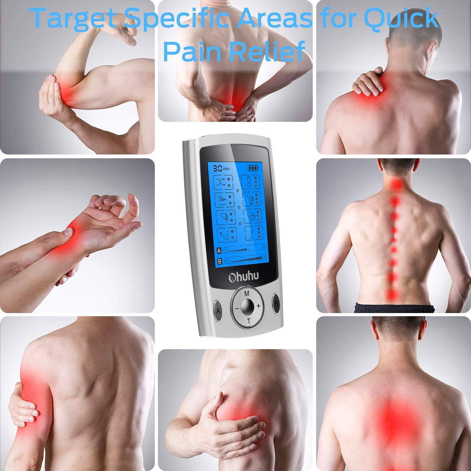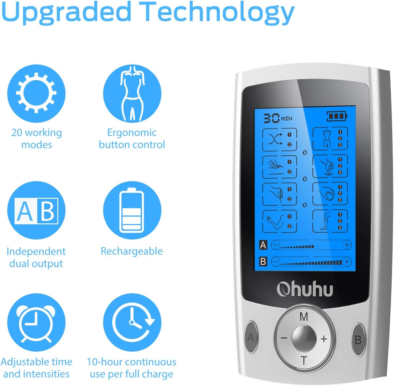 Upgraded Independent Dual Channel TENS EMS Unit of Ohuhu, 20 Massage Modes Rechargeable Muscle Stimulator for Pain Relief Therapy, Electronic Pulse Massager with 24 Pads, Silver Father's Day Gift: Health & Personal Care