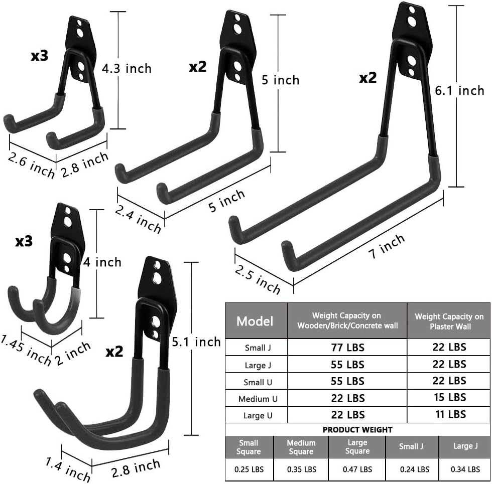 Keep your garage clean and organized with SMAID Garage Hooks! Made of durable iron and sturdy anti-slip coating, SMAID Garage Hooks are durable to hold heavy objects. Various sizes for every situation. Perfect to hold your ladder, bike, garden tools, power tools, heavy extension cables, folding chairs, and other bulky objects. Organize your heavy tools in garage, garden, shop, basement or warehouse, making it a much neater space. Package Including: ✉Seller Guarantee✉