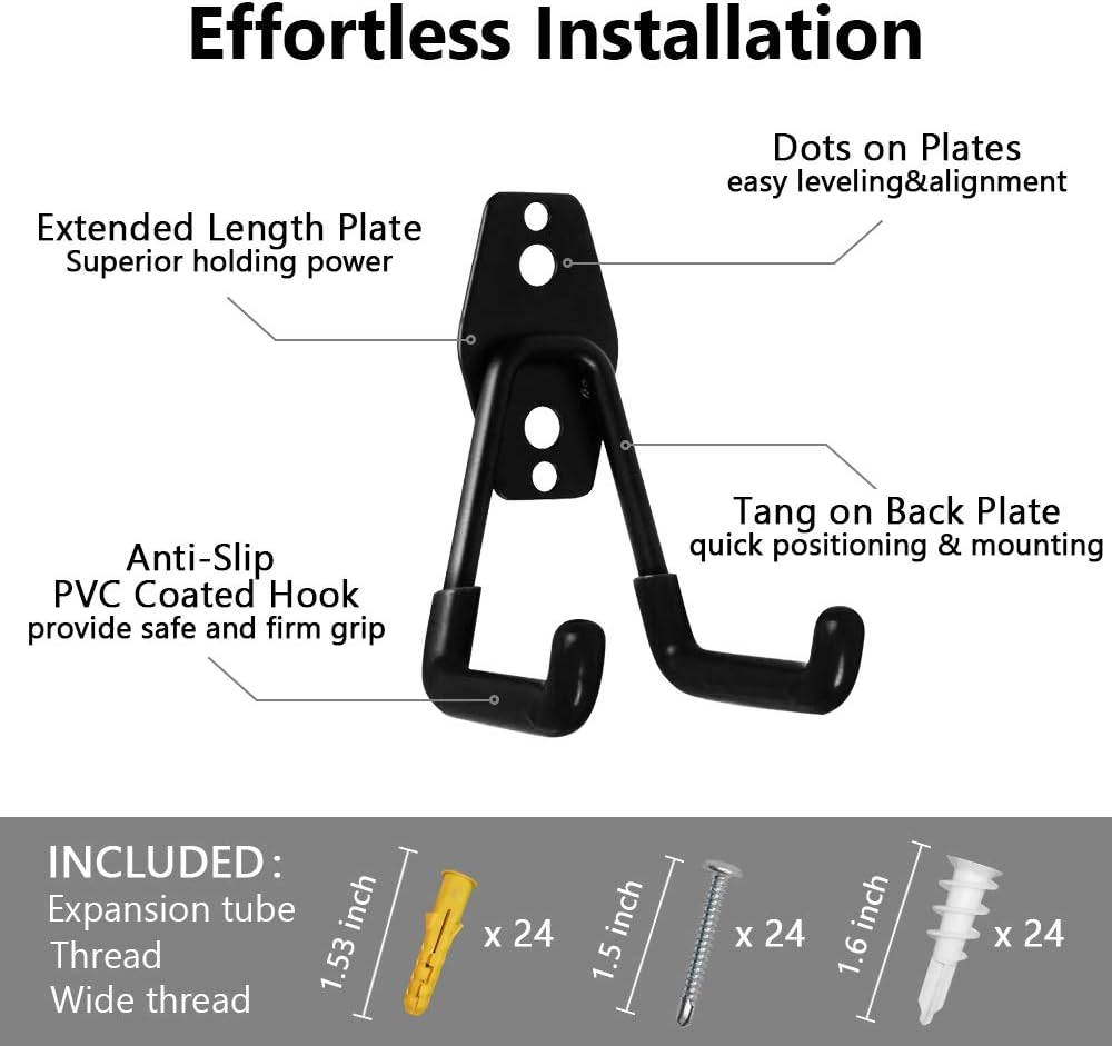 Garage Hooks, 12 Pack Heavy Duty Garage Storage Hooks Steel Tool Hangers for Garage Wall Mount Utility Hooks and Hangers with Anti-Slip Coating for Garden Tools Organizer, Ladders, Bikes, Bulky Items - -