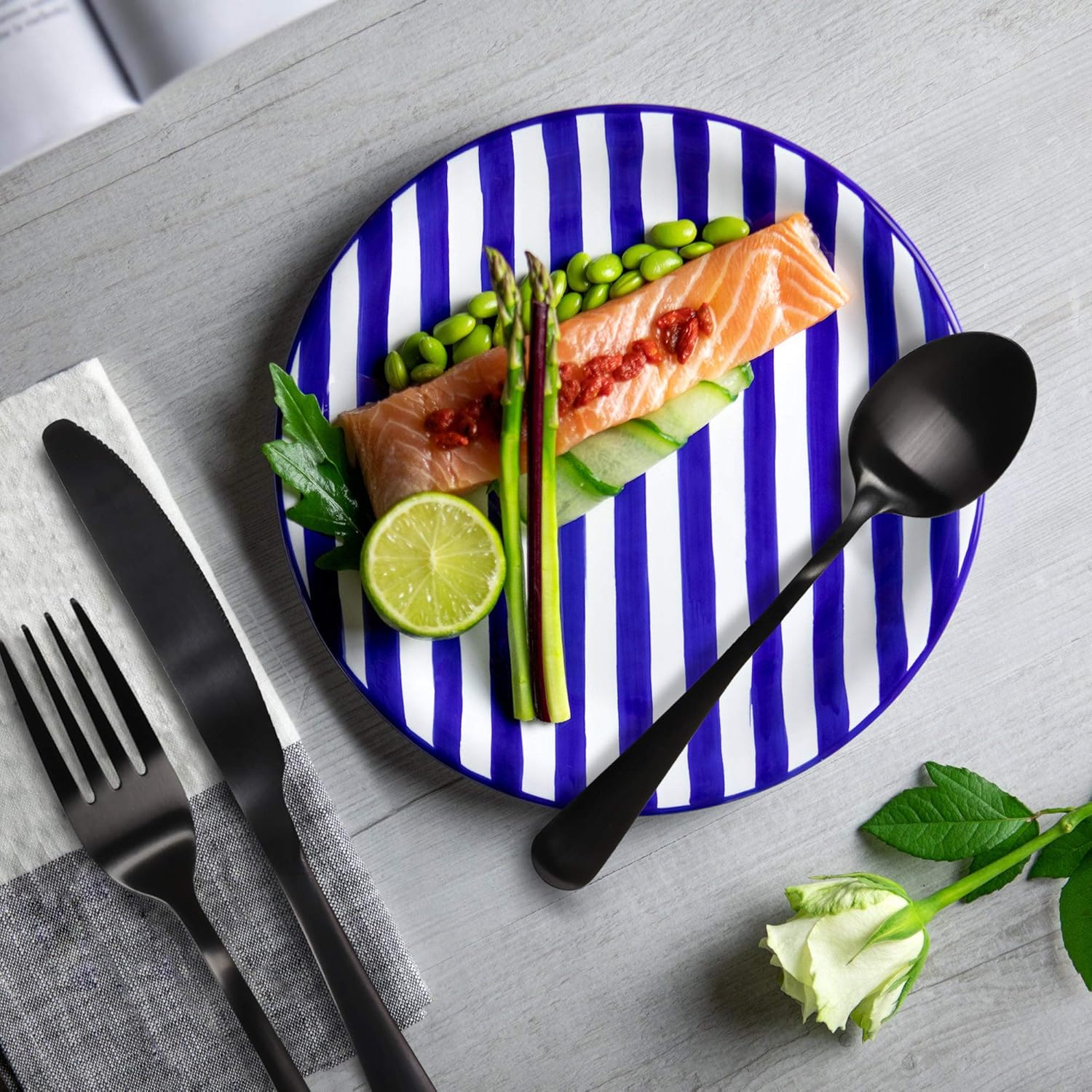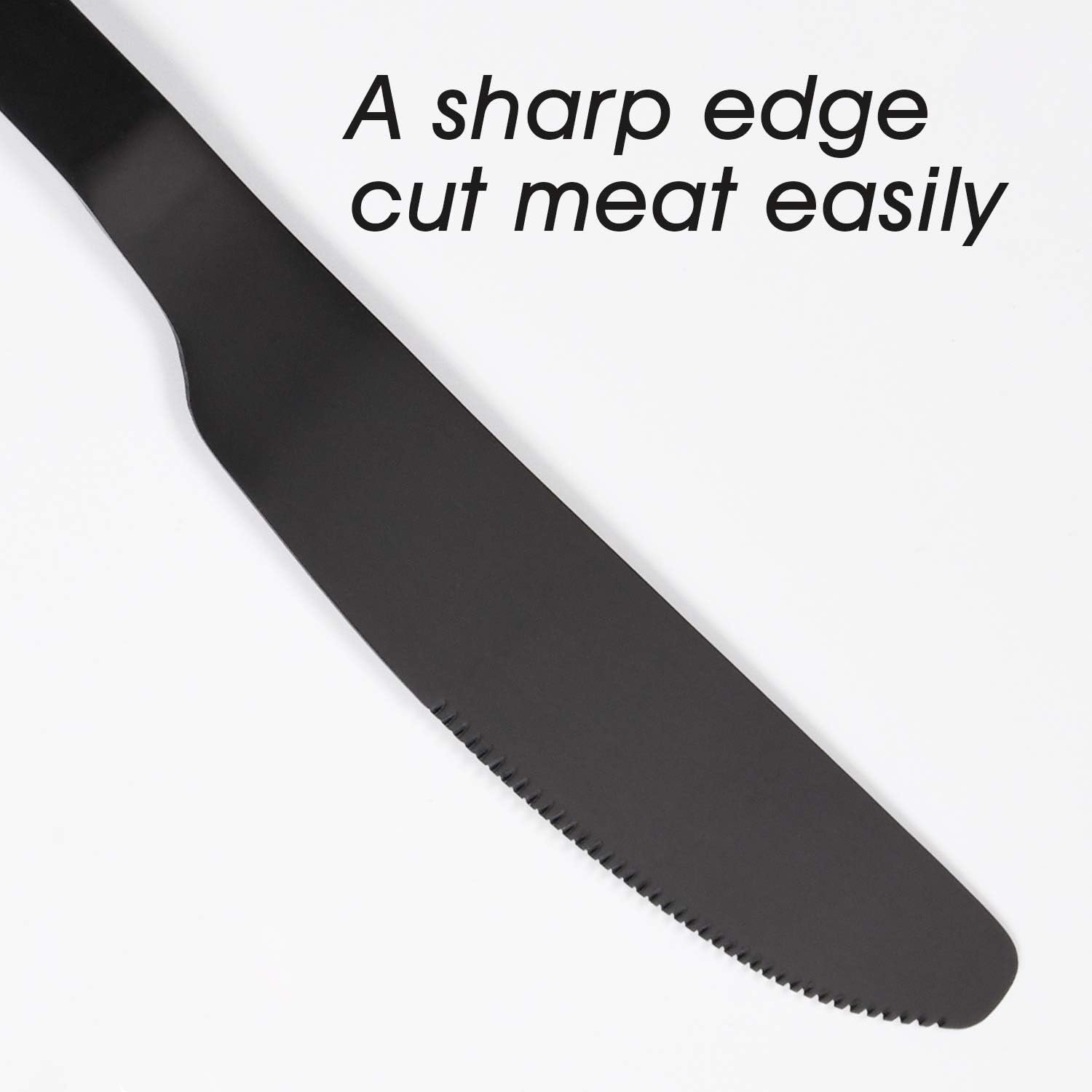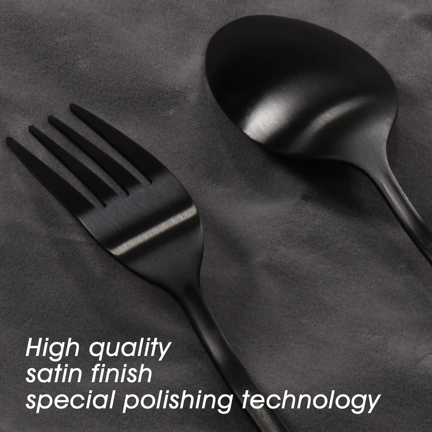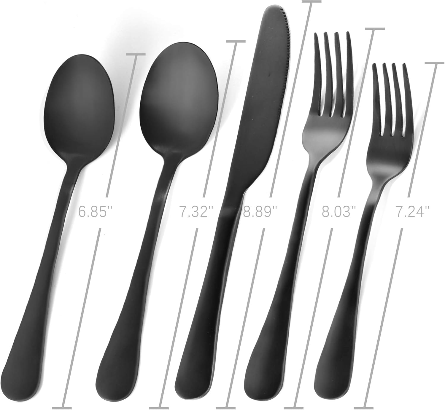 Fulfillment by Amazon (FBA) is a service we offer sellers that lets them store their products in Amazon's fulfillment centers, and we directly pack, ship, and provide customer service for these products. Something we hope you'll especially enjoy: FBA items qualify for FREE Shipping and Amazon Prime.If you're a seller, Fulfillment by Amazon can help you grow your business. Learn more about the program. Minimalist design with earnest attitude: the outline of our flatware is designed through the using habit of humans for the most natural and comfortable using different sizes of flatware. The pressure point design is well considered, which ensures none uncomfortable could be caused. Suitable for every occasion: whether you have a fancy dinner or throw a party with these 5 sets 25 pieces of flatware you can handle it perfectly. Adequate quality: with the stainless steel, this flatware has very sturdy hand feeling, will not bend even under high pressure, rust-proof, this has gone through the saltwater soaking test and still does not have any rust. Health and non-toxic: The flatware adopts stainless steel makes your using to be very healthy. well design lead you with comfortable using, without pressure point you will never feel pain when using our flatware. Washing instructions: *Recommend hand washing, it is the ideal method to assure the beauty of black silverware. *Please don't put the flatware into the salt, soy sauce, vinegar, soup, water for a long time. *Please do not use steel wire or hard material to clean this product.