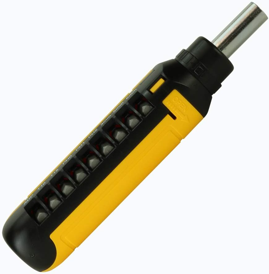 The screwdriver’s non-slip handle provides a comfortable secure grip for optimal control. Best of all, the handle's innovative design provides space for storing the screwdriver bits and sockets inside, making it possible to keep them neatly organized and easy to find. There is an additional storage space for 6 bits (3 slotted bits and 3 Phillips bits) at the end of the screwdriver handle. 3 pieces of Slotted Tips (# 4, # 5, # 6) 3 pieces of Phillips bits (PH1, PH2, PH3) 36-tooth ratchet and high-precision 10 degree rotation make it faster to tighten or loosen the nut. The screwdriver operates in the lock position and features both forward and reverse ratcheting actions. When the triangle symbol towards “L”, the screwdriver will turn the screw/nut clockwise When the triangle symbol point to the middle part of “L” and “R”, the screwdriver will lock the position right now and can't turn the bit holder. When the triangle symbol towards “R”, the screwdriver will turn the screw/nut counterclockwise.